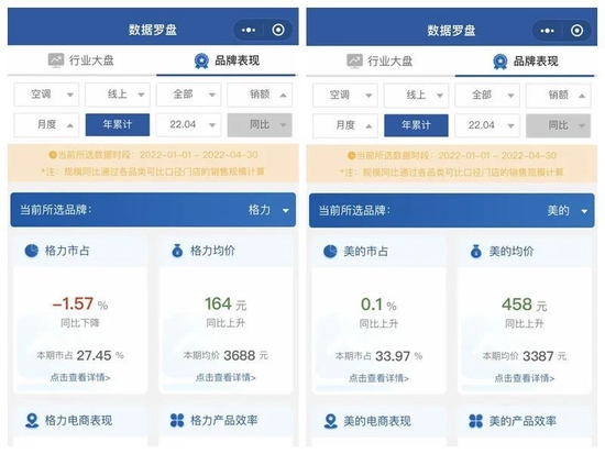 在与对手的线上竞争中,格力处于下风。据奥维云网数据显示,今年1-4月空调产品线上市占率美的为33.97%,格力为27.46%。