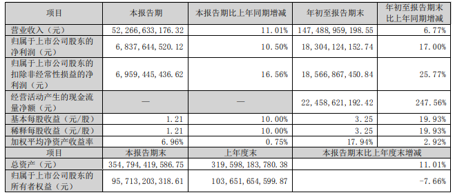 其中,格力电器Q3(第三季度)营收522.67亿元,同比增长11.01%;净利润68.38亿元,同比增长10.5%;扣非净利润69.59亿元,同比增长16.56%。