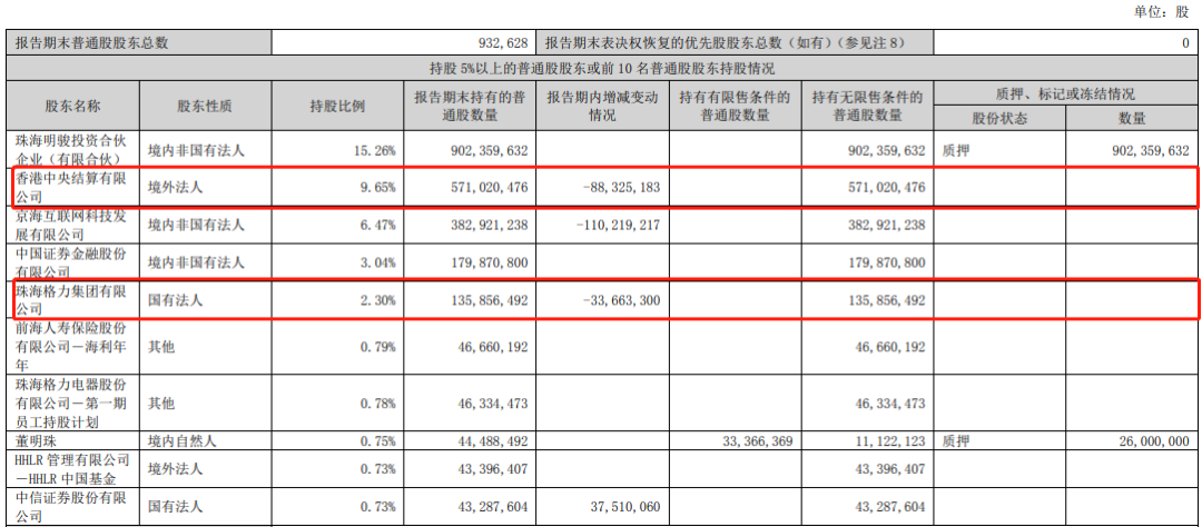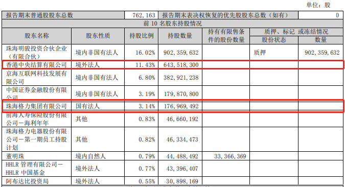 值得一提的是,格力电器第三季度获多路资金加仓。其中,香港中央结算有限公司加仓12.7%,位列格力电器第二大股东;珠海格力集团有限公司(简称“格力集团”)加仓幅度最大,达30.26%,持股1.77亿股,位列第五大股东。