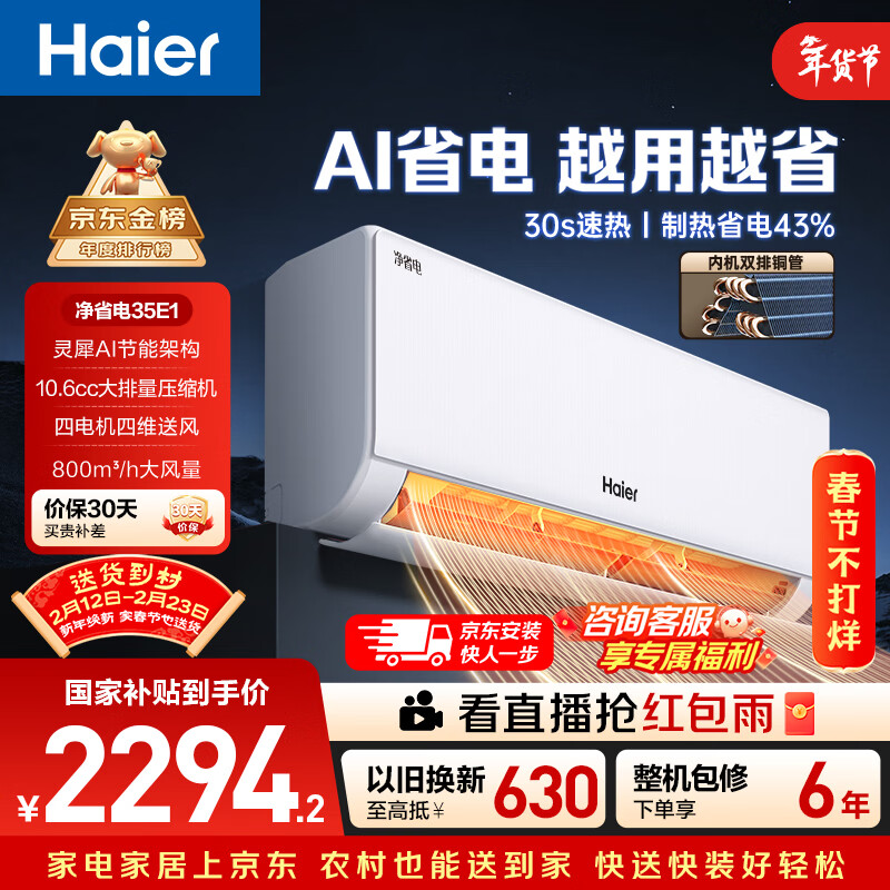 推荐入手:海尔小红花空调绽放版1.5匹挂机 KFR-35GW/E1-1