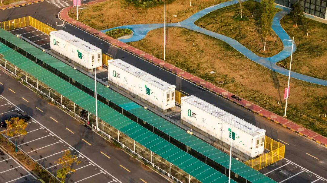 行政楼旁的储能预制舱像沉稳的“能量银行”,把富余电力存起来;